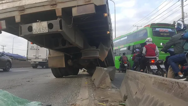 Chiếc xe tải húc vào dải phân cách