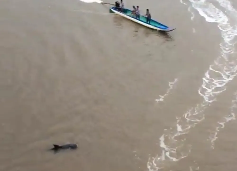 Chiều 27-4, ông Hồ Văn Miên, Chủ tịch UBND xã Trần Thới (huyện Cái Nước, tỉnh Cà Mau), xác nhận trên địa bàn vừa xuất hiện cá heo đi lạc vào sông Bảy Háp.