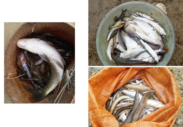 Các loại cá chết trên sông Âm được người dân xã Vân Am, huyện Ngọc Lặc, tỉnh Thanh Hóa vớt lên