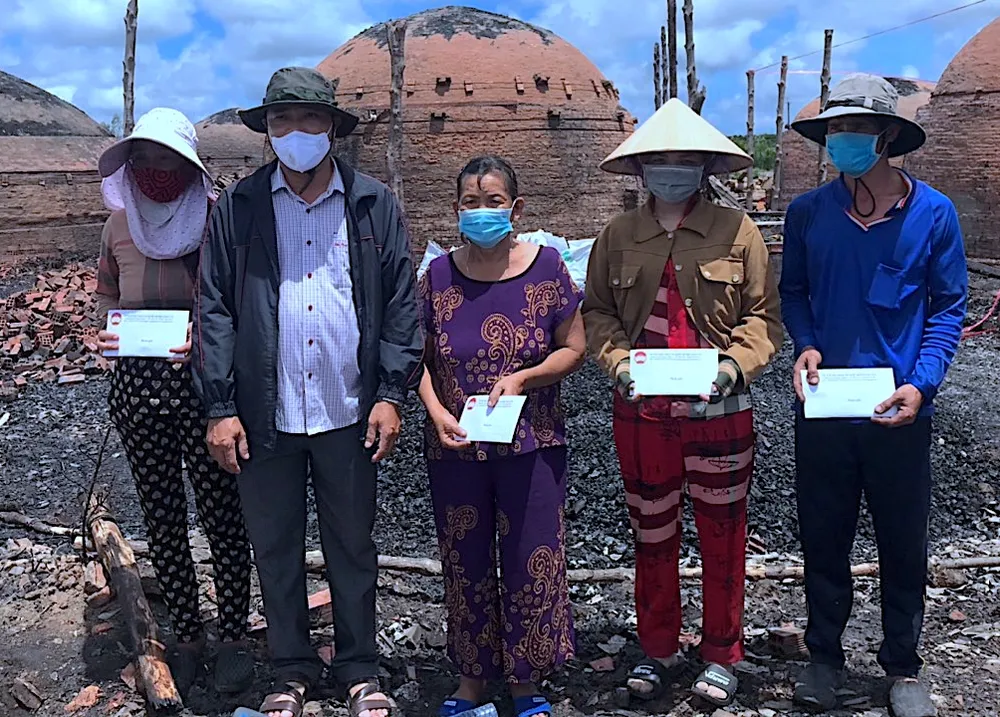 Chiều 21-3, Ủy ban Mặt trận Tổ quốc huyện Năm Căn (tỉnh Cà Mau) thành lập đoàn đến thăm hỏi và hỗ trợ bằng tiền mặt (5 triệu đồng/hộ) cho 4 hộ dân là xã viên hợp tác xã hầm than 2-9 (ấp Nhà Hội, xã Tan Giang) bị ảnh hưởng bởi vụ cháy.
