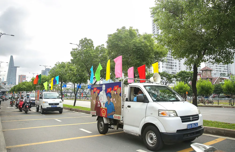 Xe tuyên truyền về bầu cử trên địa bàn TPHCM