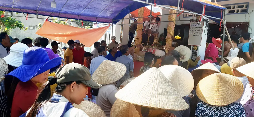 Người dân địa phương dựng rạp, chuẩn bị hòm nhỏ, hương khói, vàng bạc… để làm các thủ tục mai táng cá ông theo tục lệ, tín ngưỡng của địa phương. Hàng trăm người dân địa phương đã đổ đến để thắp hương và hỗ trợ công sức, tiền của cho người phát hiện cá ông lo thủ tục mai táng cho cá.