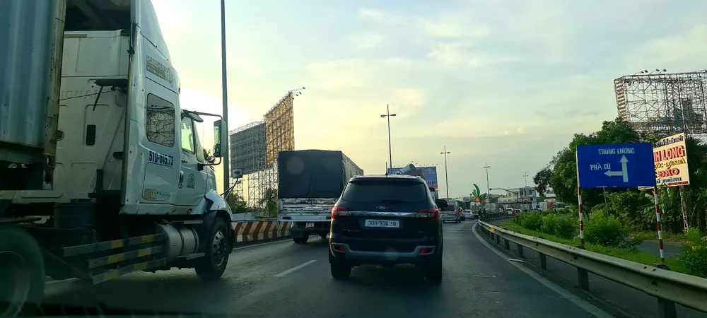 Lượng phương tiện lưu thông trên tuyến Quốc lộ 1 quá nhiều dẫn đến tình trạng nối đuôi và di chuyển rất chậm