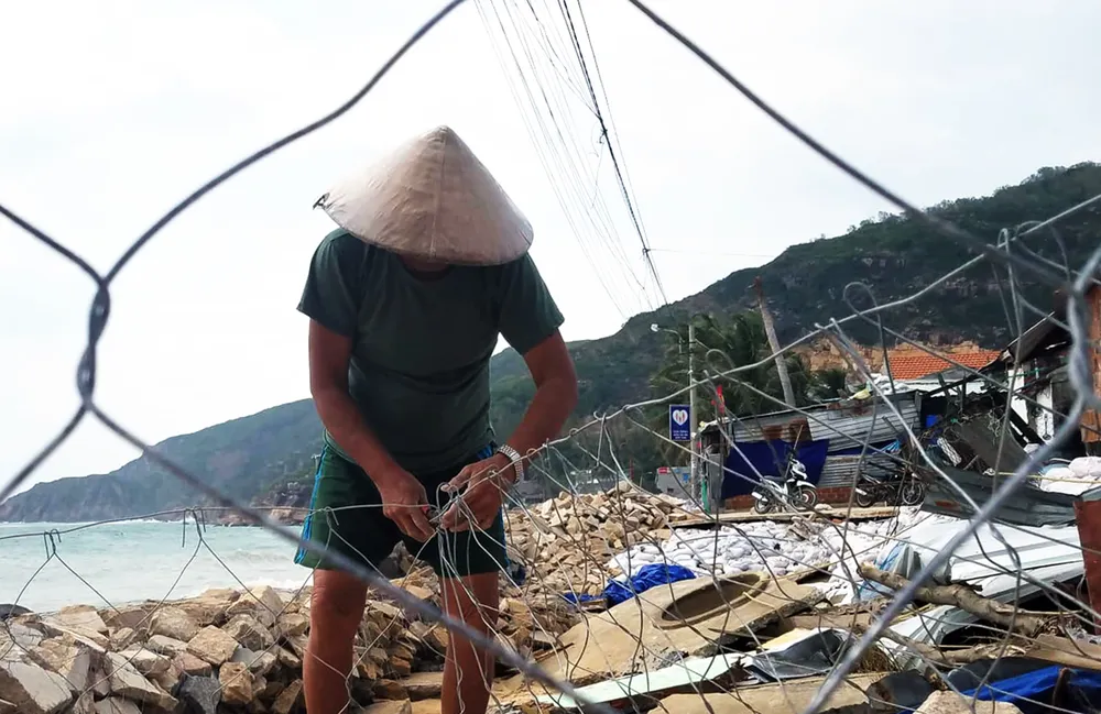 Cùng ngày, chính quyền địa phương và người dân xã Nhơn Hải đang nỗ lực khắc phục tạm thời tuyến kè biển ở thôn Hải Nam bị sóng biển trong cơn bão số 5 đánh sập. Các hộ dân ở khu vực nguy hiểm ven biển thuộc thôn Hải Nam và toàn xã Nhơn Hải cũng sẽ được di dời trong tình huống khẩn cấp.