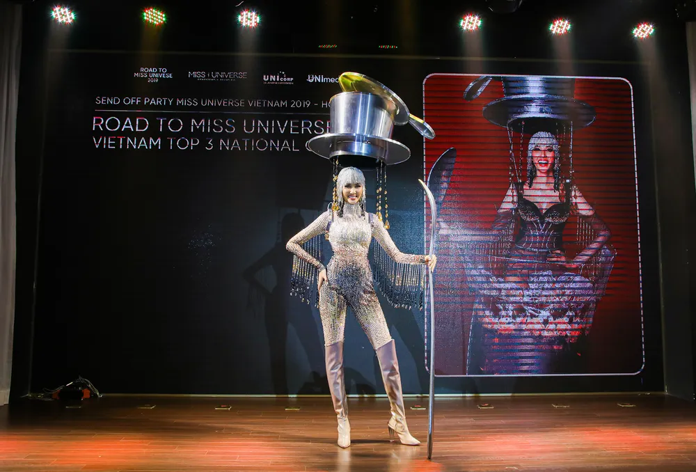 Café phin sữa đá là trang phục dân tộc của Hoàng Thùy tại Miss Universe 2019