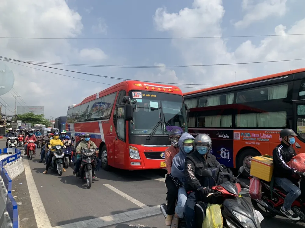 Lực lượng chức năng đã túc trực 100% để giải quyết, tuy nhiên do lượng phương tiện quá lớn khiến các xe nối đuôi nhau nhích từng chút một