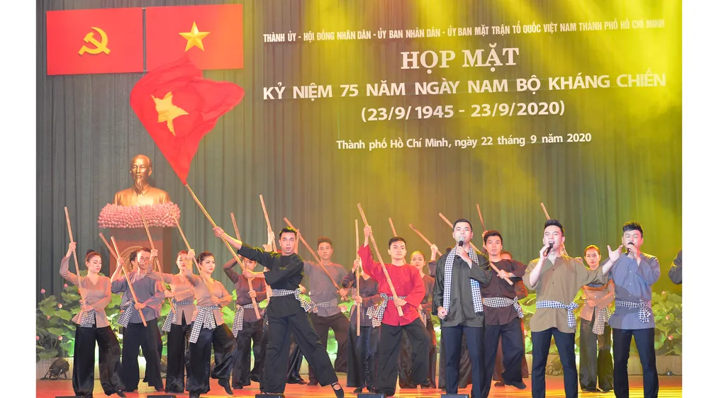 Chương trình văn nghệ mừng Họp mặt kỷ niệm 75 năm Ngày Nam Bộ kháng chiến. Ảnh: VIỆT DŨNG