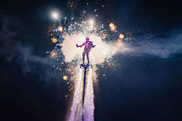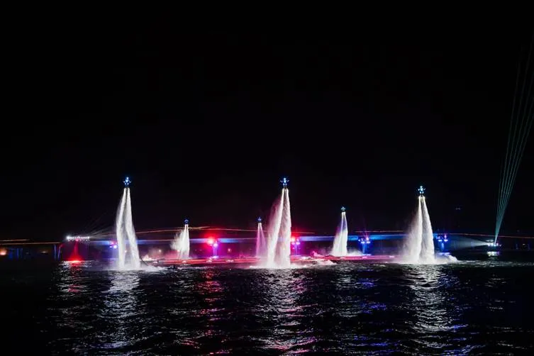 Tại vịnh biển Thị trấn Hoàng Hôn, 21 vận động viên hàng đầu thế giới bộ môn Jetski, Jetsuft và Flyboard đã phô diễn những kỹ thuật đỉnh cao với trang phục biểu diễn LED được nâng cấp hiện đại. Trong phiên bản nâng cấp năm nay, trang phục của show diễn được thiết kế bởi Bao Rong – đơn vị thiết kế phục trang danh tiếng từng hợp tác với các sự kiện quốc tế và nhiều tên tuổi lớn như đạo diễn Trương Nghệ Mưu.