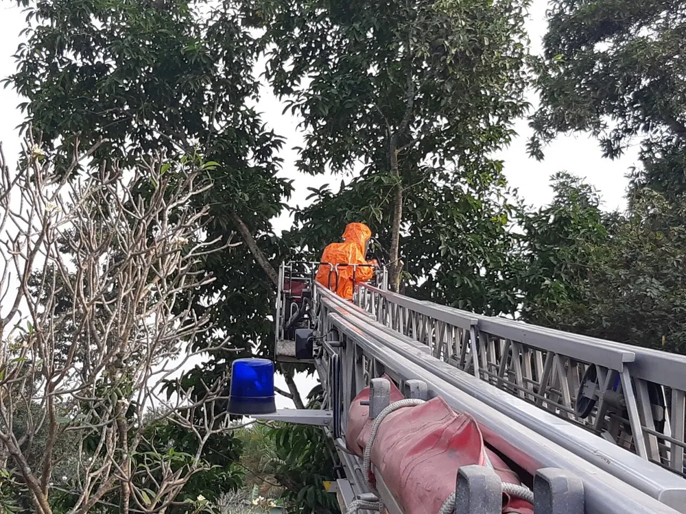 Nhận tin báo, khoảng 8 giờ 50 ngày 5-12, Đội Cảnh sát PCCC-CNCH TP Thủ Đức đã điều động 1 xe thang cùng 3 cán bộ, chiến sĩ có mặt để xử lý các tổ ong vò vẽ này.