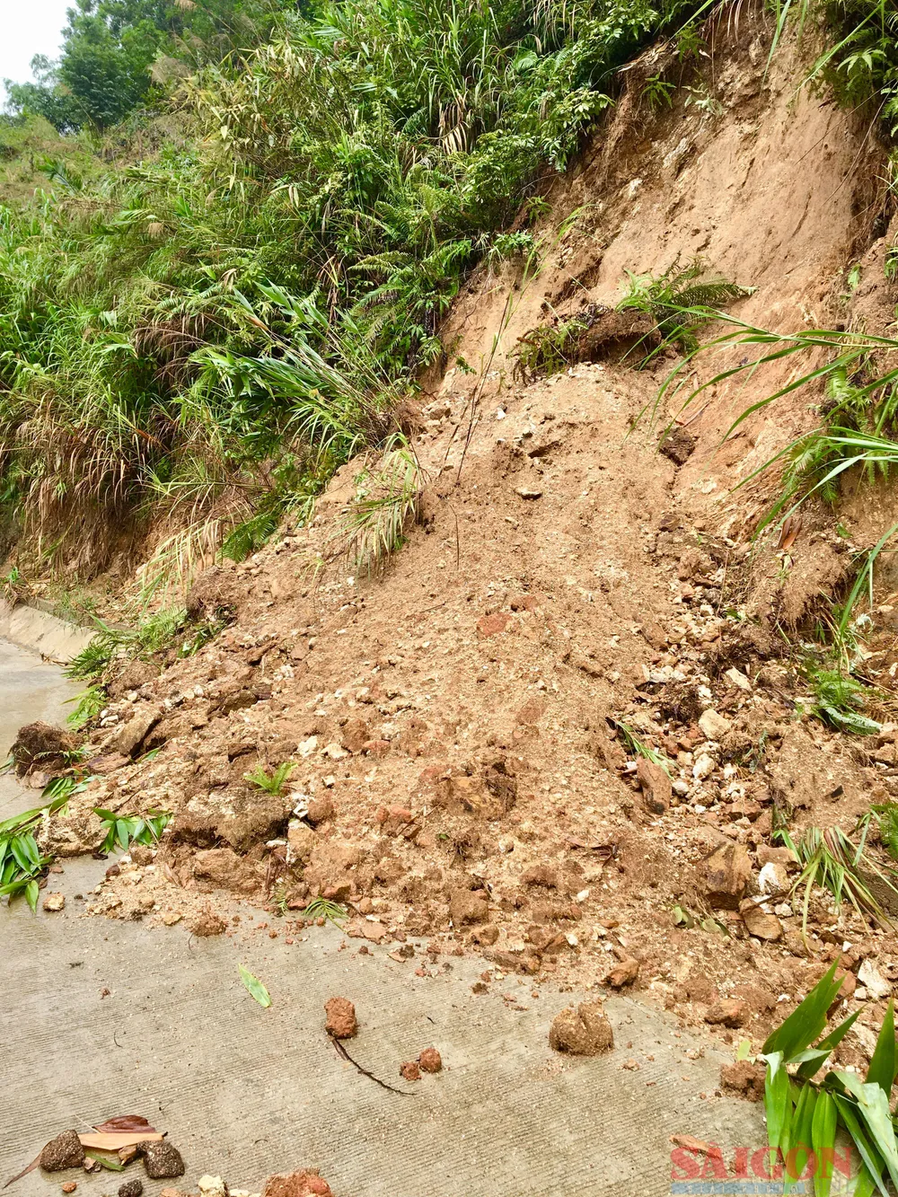Sau nhiều ngày mưa liên tiếp, các sườn đồi đã "no nước" khả năng tiếp tục xảy ra sạt lở. Ảnh: TIẾN DŨNG