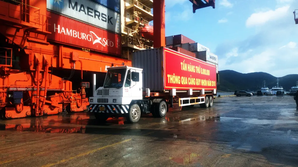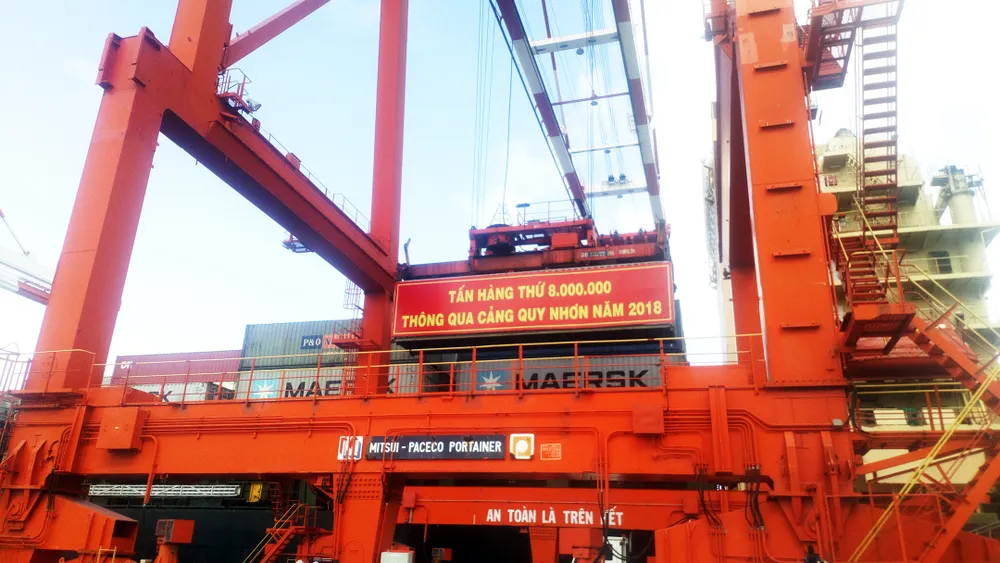 Tấn hàng hóa thứ 8 triệu qua cảng Quy Nhơn thuộc Tập đoàn Maersk lines (Đan Mạch) trên tàu Future (quốc tịch Panama) chuyên vận chuyển container, trọng tải 25.000 tấn.