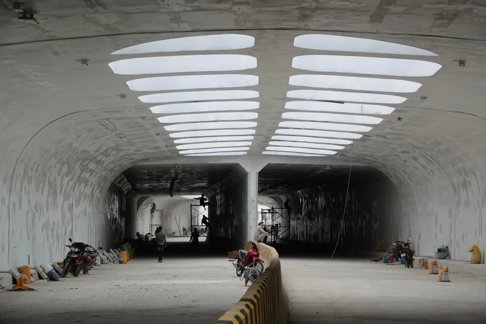 Các công nhân đang gấp rút hoàn thiện đoạn cuối cùng của hầm chui
