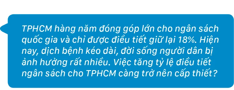 Trước khi dịch Covid-19 bùng phát, TPHCM đã gặp nhiều điểm nghẽn trong phát triển và trong đó có sự quá tải của hệ thống y tế, cơ sở hạ tầng, đường sá, trường học… Gặp đại dịch xảy ra, hệ thống y tế vốn quá tải, khủng khoảng y tế xảy ra. Qua đại dịch càng cho thấy việc tăng tỷ lệ điều tiết ngân sách cho TPHCM là vô cùng cấp thiết. Đó là cách để bồi dưỡng, tăng năng lực cho “cơ thể” TPHCM sau “trận bệnh nặng”. TPHCM có vai trò rất lớn đối với kinh tế cả nước. Tăng tỷ lệ điều tiết ngân sách cho TPHCM cũng chính là giúp cho ngân sách quốc gia tăng thêm, bởi một đồng vốn đầu tư tại TPHCM có khả năng sinh lời cao hơn mức bình quân chung của cả nước.