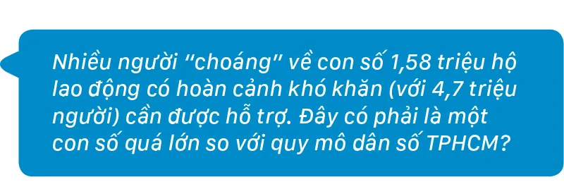 Khi đại dịch xảy ra, ai cũng khó khăn cả, kể cả “người giàu cũng khóc”. Nhiều người cho rằng TPHCM có 2,6 triệu hộ dân, tại sao lại có tới 1,58 triệu hộ lao động cần hỗ trợ?!