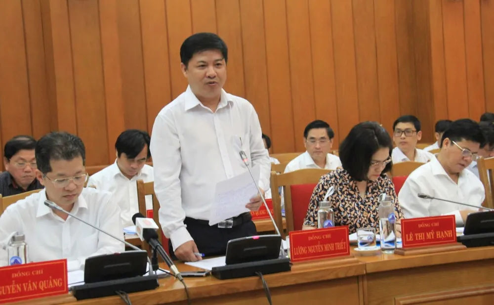 Ông Lương Nguyễn Minh Triết, Phó Bí thư Thường trực, Chủ tịch HĐND TP Đà Nẵng phát biểu góp ý tại buổi làm việc