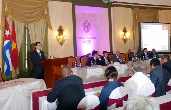 Phát biểu trước đông đảo các doanh nghiệp hai nước, Chủ tịch nước Trương Tấn Sang cho rằng đây hoạt động hết sức có ý nghĩa góp phần giúp doanh nghiệp hai nước tìm kiếm mở rộng cơ hội hợp tác đầu tư kinh doanh tại mỗi nước, đưa quan hệ hợp tác giữa 2 nước đi vào thực chất và hiệu quả hơn. Những năm qua Cuba đã đạt được những thành tựu to lớn về phát triển kinh tế - xã hội cũng như về đối ngoại. Đặc biệt, việc chính thức thiết lập lại quan hệ ngoại giao với Hoa Kỳ sau hơn 53 năm gián đoạn chính là kết quả của chính sách đối ngoại năng động, đúng đắn của Cuba, nâng cao vị thế quốc tế của Cuba đồng thời mở ra nhiều triển vọng và cơ hội để đẩy nhanh phát triển kinh tế, cải thiện đời sống của nhân dân Cuba.