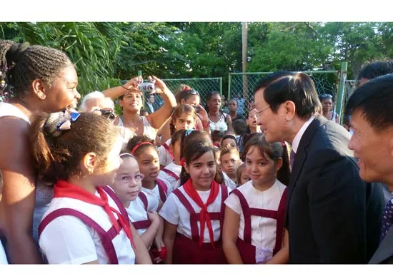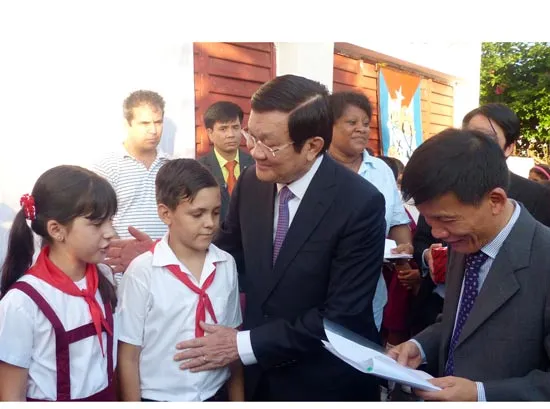 Chủ tịch nước Trương Tấn Sang thăm, trò chuyện với các em học sinh Trường Bác Hồ ở Havana