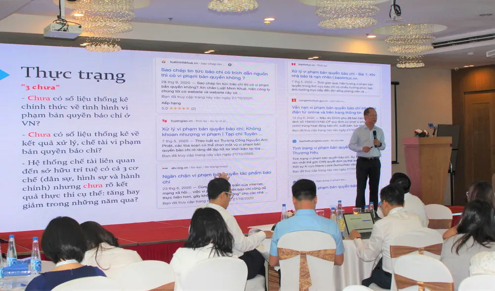 Tham luận của đại diện các cơ quan báo chí cho thấy thực tiễn khó khăn trong “cuộc chiến” bảo vệ bản quyền. Nhà báo Lê Xuân Trung, Phó Tổng Biên tập báo Tuổi Trẻ cho biết, hiện nay chưa có số liệu thống kê chính thức về tình hình vi phạm bản quyền báo chí ở Việt Nam. Chưa có số liệu thống kê kết quả xử lý chế tài. Hệ thống chế tài có cả 3 cơ chế: dân sự, hình sự, hành chính. Nhưng đến nay cũng không có số liệu báo cáo là thực thi ra sao, tăng hay giảm.
