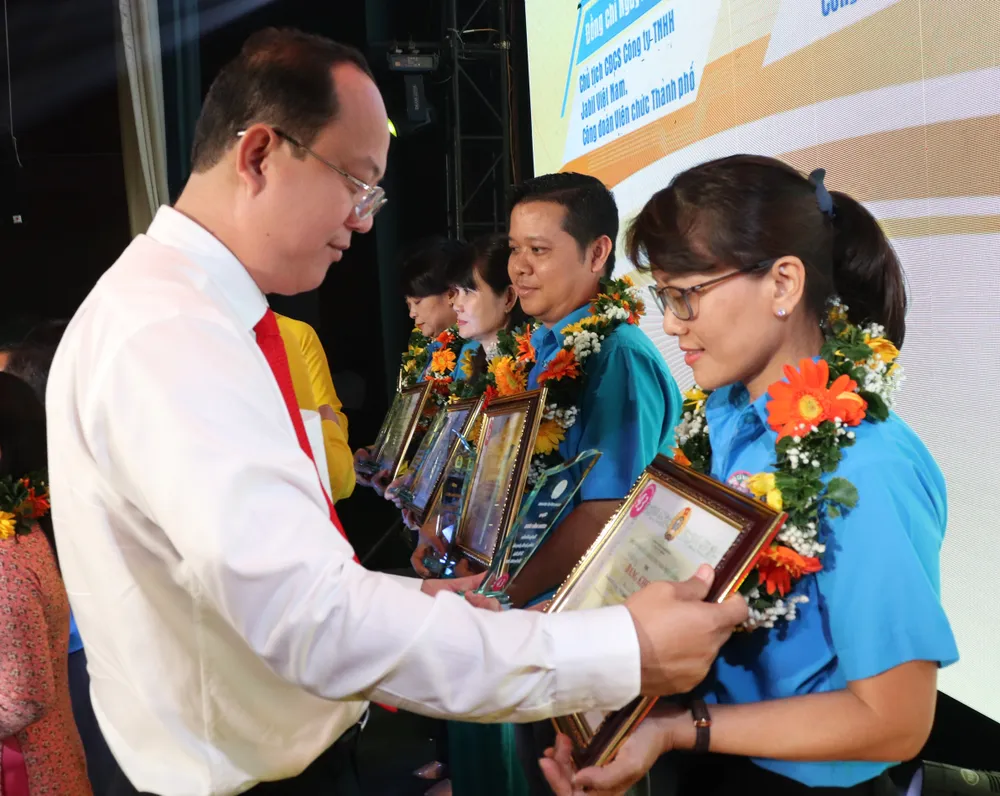 Dịp này, LĐLĐ TPHCM tuyên dương 40 tập thể, 79 cá nhân có thành tích xuất sắc trong học tập và làm theo tư tưởng, đạo đức, phong cách Hồ Chí Minh và 32 cá nhân điển hình gương “Người tốt, việc tốt”.