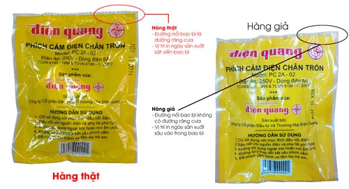 Công ty Cổ phần Bóng đèn Điện Quang đã có thông báo khuyến cáo nhằm giúp người tiêu dùng cách phân biệt phích cắm điện do Điện Quang sản xuất và hàng nhái, hàng giả.