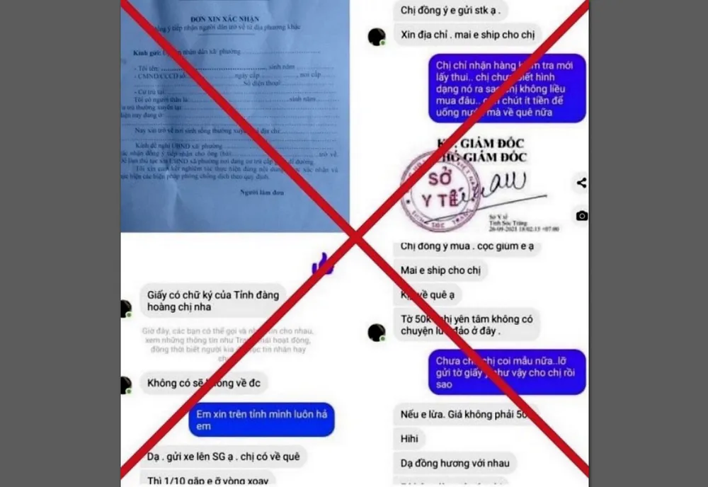 Các đối tượng lừa đảo cho rằng đang sở hữu các giấy xác nhận đi đường “tiếp nhận công dân về quê”, có xác nhận chữ ký của cơ quan có thẩm quyền tỉnh Sóc Trăng còn để trống thông tin họ tên, năm sinh, địa chỉ.