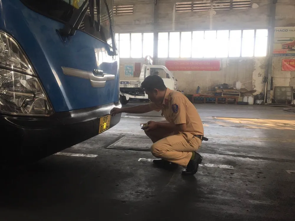Lực lượng CSGT hỗ trợ việc kiểm tra đăng kiểm các phương tiện tại TPHCM |