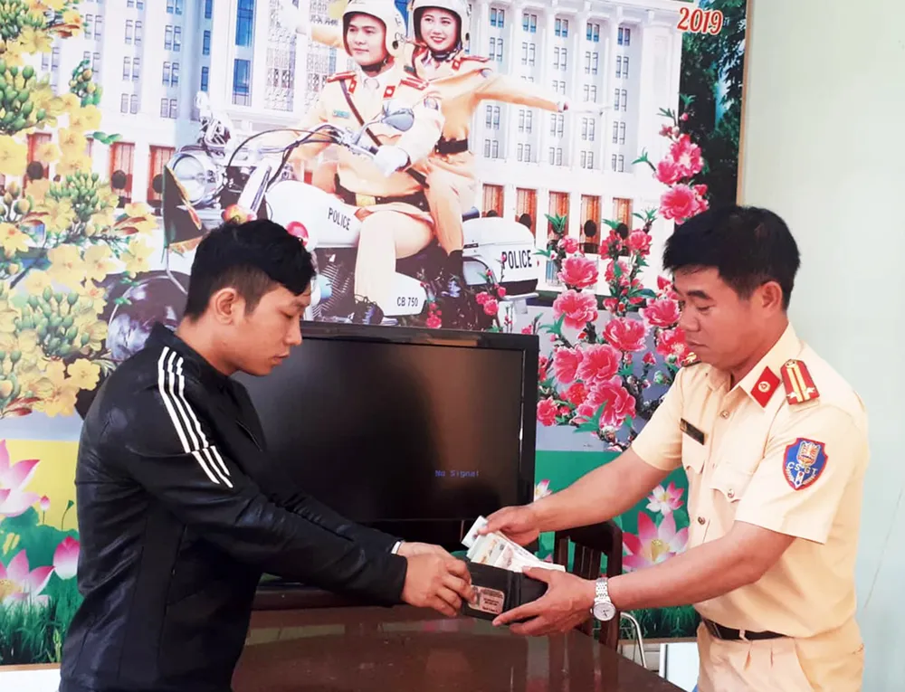 Cảnh sát giao thông trả lại tài sản đánh rơi cho người tham gia giao thông