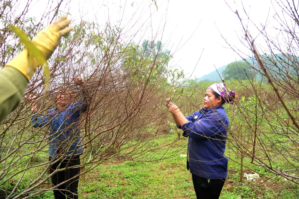 Còn tại Hà Tĩnh, những ngày đầu tháng 1-2022, tranh thủ tiết trời nắng ráo, hàng trăm hộ dân tại xã Lưu Vĩnh Sơn (huyện Thạch Hà) và xã Cẩm Hưng (huyện Cẩm Xuyên) - “thủ phủ” trồng đào cảnh nổi tiếng nhất ở tỉnh Hà Tĩnh - tất bật bước vào cao điểm tuốt lá, tỉa cành khô, chăm sóc nụ để chuẩn bị phục vụ thị trường Tết Nguyên đán Nhâm Dần.
