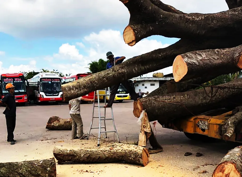 | Trước đó, như Báo SGGP đã đưa tin, sáng 19-11, lực lượng CSGT tỉnh Bình Định đã phát hiện xe đầu kéo chở cây đa sộp có kích thước “siêu khủng” đang đi từ hướng Gia Lai về Bình Định nên ra hiệu lệnh dừng xe để kiểm tra. CSGT tỉnh Bình Định bắt giữ cây đa "siêu khủng" vào sáng 19-11.