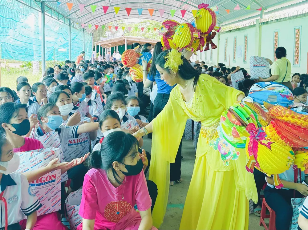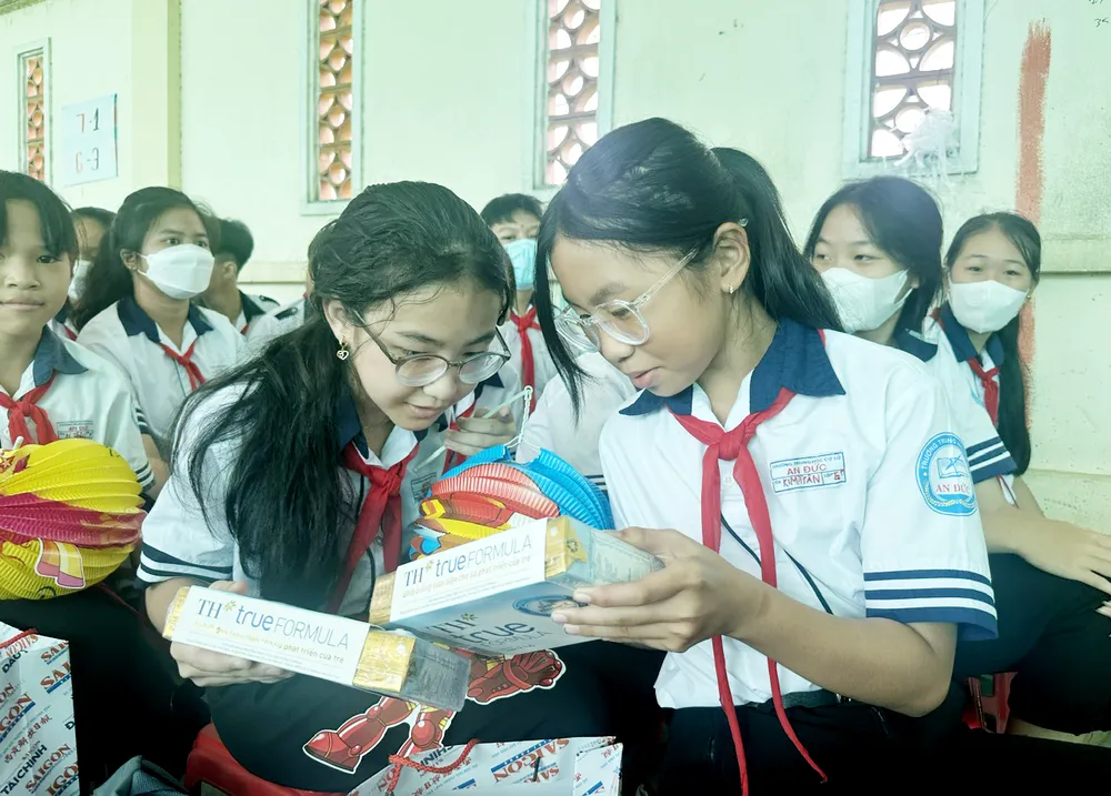 Thấu hiểu sự khó khăn của các em học sinh quê xứ dừa, Báo SGGP phối hợp Công ty TNHH Amway Việt Nam, Công ty TNHH MD Trường Thịnh, TH true Milk, Công ty Cổ phần Thực phẩm Vĩnh Thành Đạt và Công ty Cổ phần Thực phẩm G.C (GC Food) và bà Phạm Ngọc Dung (quận 8) tổ chức chương trình "Vui hội Trung thu" cho gần 350 học sinh Trường THCS An Đức.