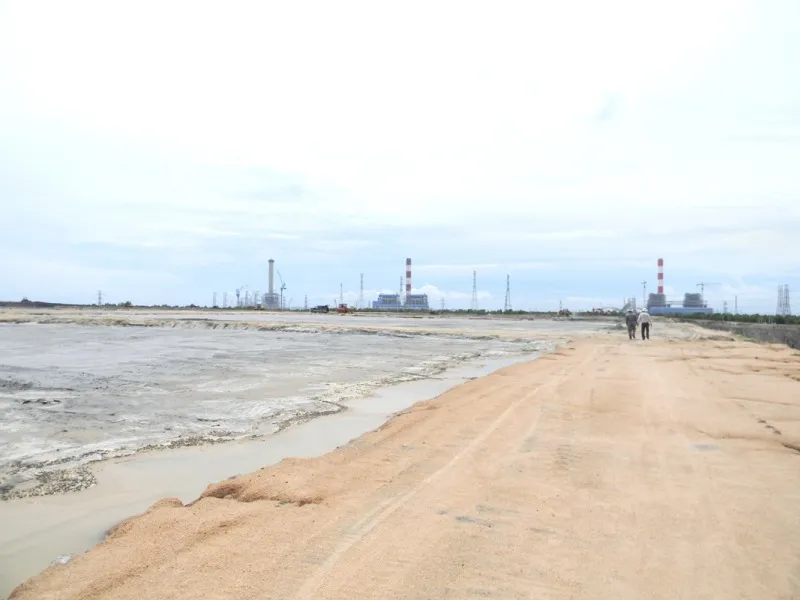 Quan sát thực tế cho thấy, tại khu vực này dọc theo các tuyến đường mòn phía Tây và phía Bắc bãi xỉ có những đống đất cát có lẫn san hô. Hiện tượng đổ đất ở đây được ghi nhận từ năm 2016 do quá trình thi công các dự án tại Trung tâm Điện lực Vĩnh Tân. Các đống đất này có nguồn gốc từ phía ven biển đưa lên (trong thành phần có một số mảnh san hô) mang theo một hàm lượng muối nhất định trong đó. Theo thời gian, khi gặp mưa, độ mặn trong đất bị rửa trôi theo nước mưa, một phần chảy tràn trên bề mặt xuống khu vực trũng thấp phía Tây bãi xỉ, một phần thấm xuống đất đi vào tầng nước ngầm mạch nông, từ đó góp phần gây nhiễm mặn cho khu vực xung quanh.