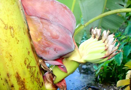 Anh Chiến cho hay, vào ngày 17-9, gia đình hết sức bất ngờ khi cây chuối mọc trong vườn bỗng dưng nứt một đường dài và trổ buồng giữa thân.