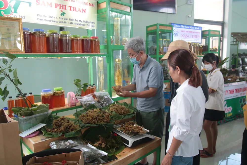 Cũng trong khuôn khổ lễ hội, Nhiều hộ đem sâm Ngọc Linh và các sản phẩm dược liệu đến phiên chợ để bán. Có những củ sâm lớn, được chủ vườn rao giá lên đến 800 triệu đồng.
