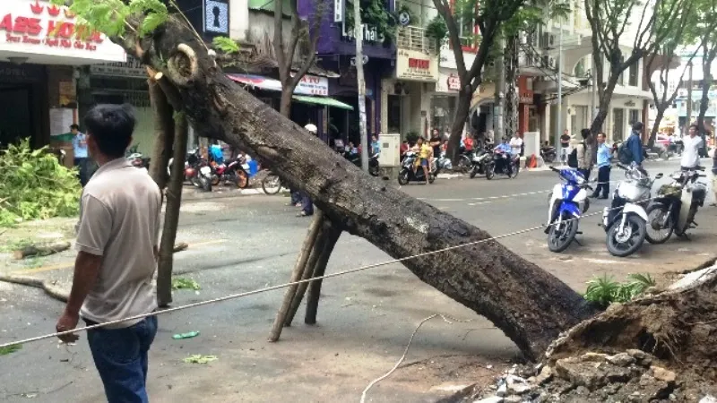 Nhận tin báo, lực lượng chức năng quận 1 có mặt phối hợp cùng nhân viên Công ty Công viên Cây xanh TPHCM di dời nhánh cây bị gãy, điều tiết giao thông qua khu vực . Người dân địa phương cho biết, do công nhân thi công cải tạo vỉa hè và có đào xới đất xung quanh gốc cây khiến cây bật gốc.
