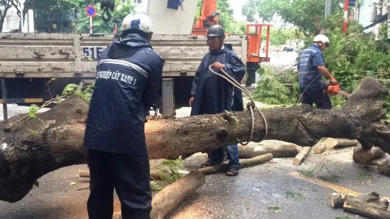 Nhân viên Công ty Công viên Cây xanh TPHCM di dời nhánh cây bị gãy
