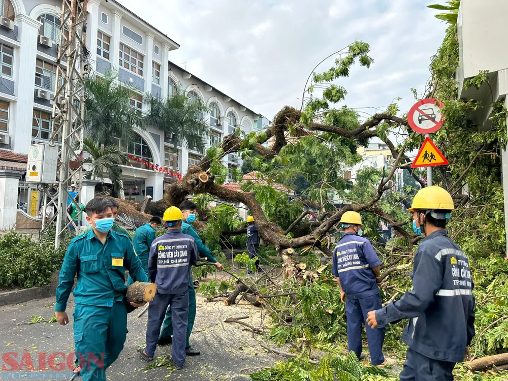 Thông tin ban đầu, khoảng 7 giờ 15 cùng ngày, trong lúc nhiều phụ huynh đưa con tới Trường THCS Trần Văn Ơn (đường Nguyễn Văn Thủ, quận 1, TPHCM) để học, bất ngờ cây xanh trong khuôn viên trường bật gốc, ngã đè sập tường.
