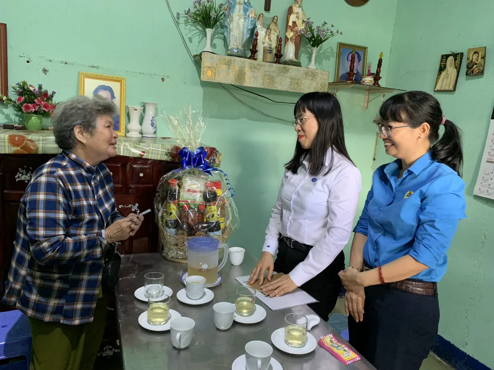 Bà Trần Thị Diệu Thúy, Chủ tịch Liên đoàn Lao động TPHCM thăm hỏi nhân viên CEP