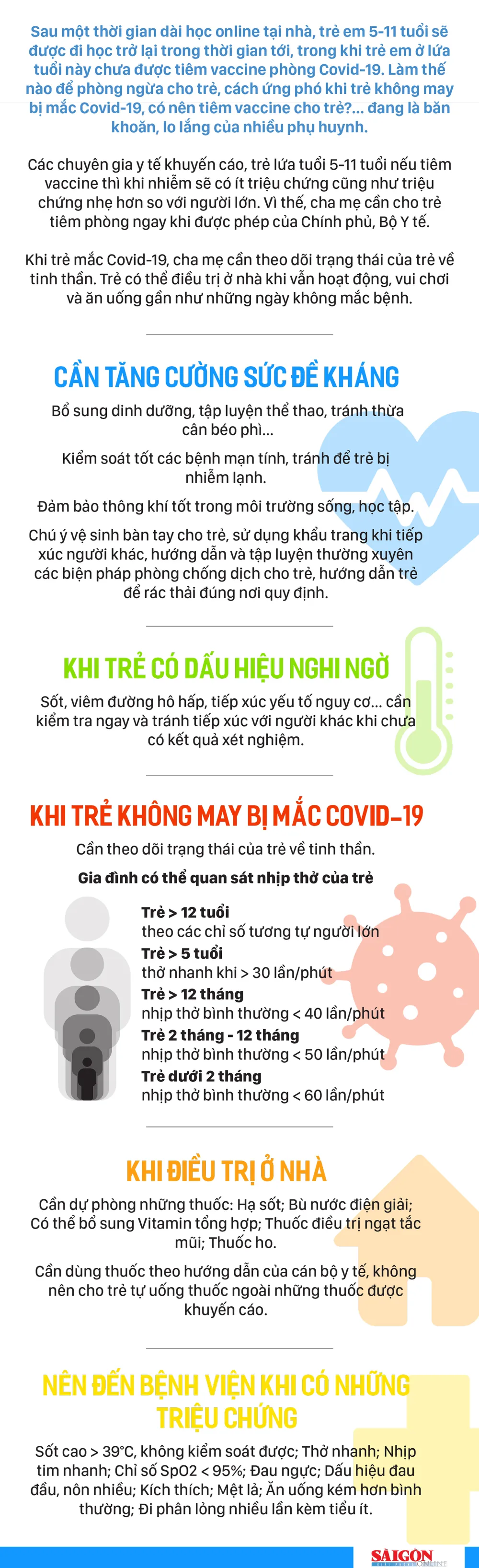 Sau một thời gian dài học online tại nhà, trẻ em 5 - 11 tuổi sẽ được đi học trở lại trong thời gian tới, trong khi trẻ em ở lứa tuổi này chưa được tiêm vaccine phòng Covid-19. Làm thế nào để phòng ngừa cho trẻ, cách ứng phó khi trẻ không may bị mắc Covid-19, có nên tiêm vaccine cho trẻ?... đang là băn khoăn, lo lắng của nhiều phụ huynh.