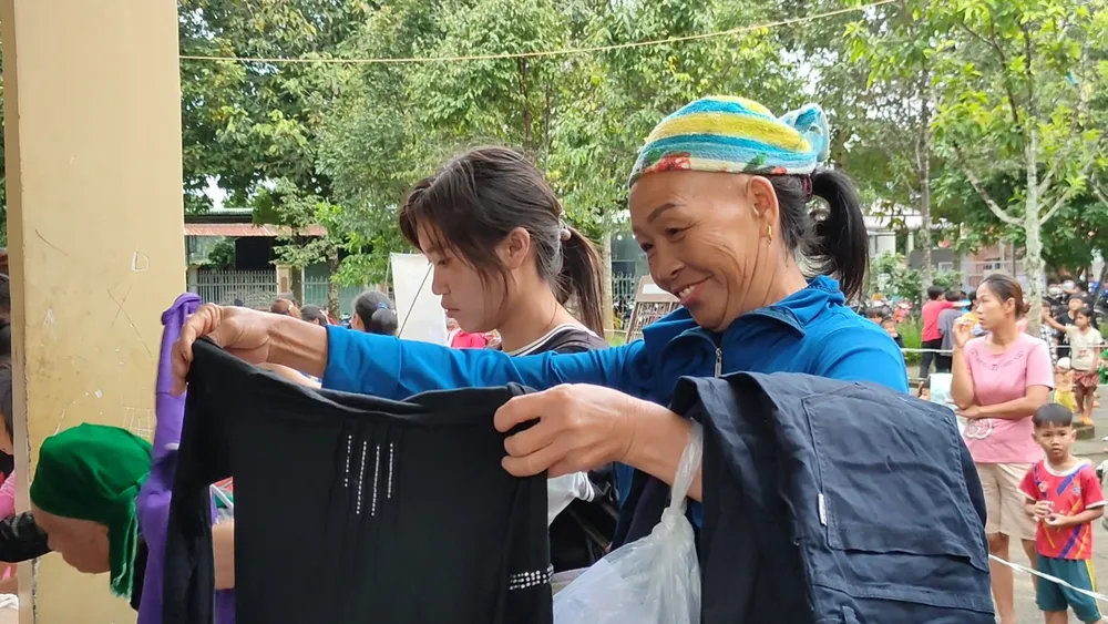 Bên cạnh đó, đoàn tổ chức khám bệnh, tư vấn sức khỏe, phát thuốc miễn phí cho 400 lượt người dân nghèo; tặng 400 phần quà nhu yếu phẩm, 400 thùng mì cho 400 hộ nghèo của xã; gian hàng quần áo 0 đồng gồm quần áo cho trẻ em và người lớn, đồ chơi trẻ em và các nhu yếu phẩm…