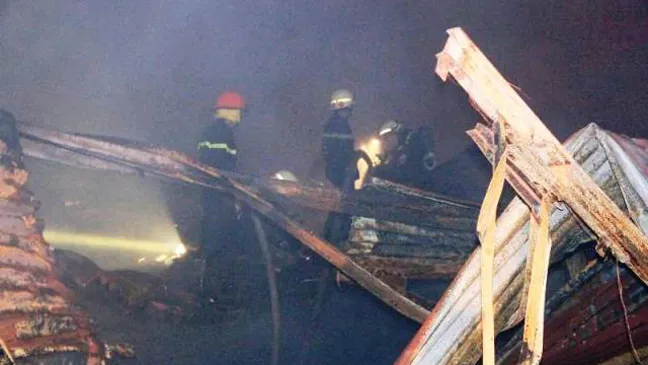 Chỉ trong vòng vài phút, ngọn lửa bùng cháy dữ dội kèm theo cột khói đen bốc lên cao hàng chục mét và những tiếng nổ lớn khiến nhiều người hoảng sợ.