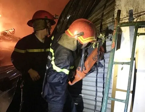 Do trong kho chứa nhiều vải nên lửa cháy lan rất nhanh. Ngọn lửa nhanh chóng bùng cháy dữ dội, cột khói đen bốc cao hàng chục mét.