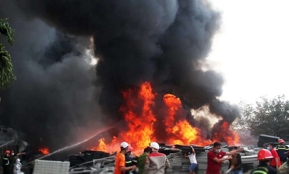 “Đám cháy bùng lên rất mạnh từ 9 giờ 30 đến 10 giờ ngày 13-4. Thời điểm ngọn lửa bùng phát có rất nhiều công nhân đang làm việc trong khu xưởng, các công nhân không thể khống chế được ngọn lửa”, một người dân sống gần vụ cháy cho biết.