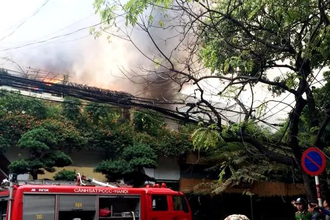 Hiện trường vụ cháy quán cafe ở phố Phan Kế Bính với cột khói bốc cao hàng chục mét