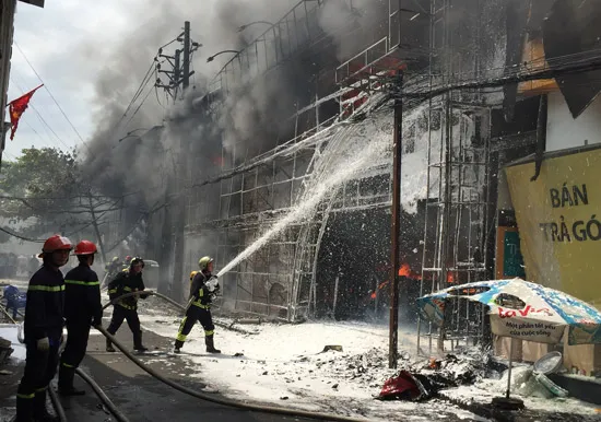 Nhận tin báo, Phòng cảnh sát PCCC quận 1 phối hợp cùng một số đơn vị nghiệp vụ của Cảnh sát PCCC TPHCM nhanh chóng đến hiện trường, triển khai nhiều phương án dập lửa.