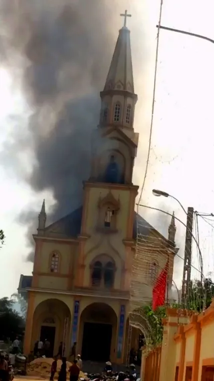Vào thời điểm trên, người dân phát hiện ngọn lửa bùng cháy dữ dội kèm theo những cột khói bốc lên nghi ngút bao trùm nhà thờ Thọ Vực.