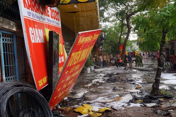 Hiện trường vụ cháy quán karaoke. Ảnh: Lã Anh