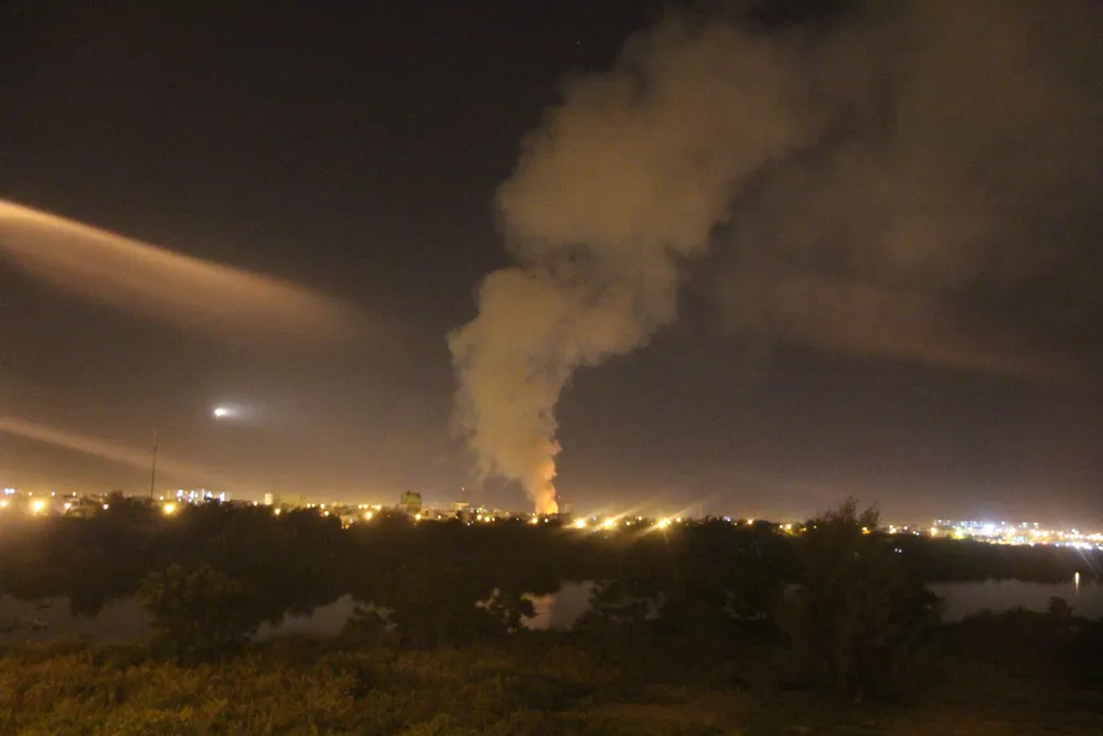 Đám cháy bao trùm một khoảng không gian lớn, đứng từ xa vẫn thấy cột khói khổng lồ.