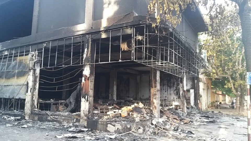 Ngôi nhà bị cháy 3 tầng, gồm tầng 1 là phòng trà, tầng 2 là phòng nghỉ nhân viên, tầng 3 không sử dụng.
