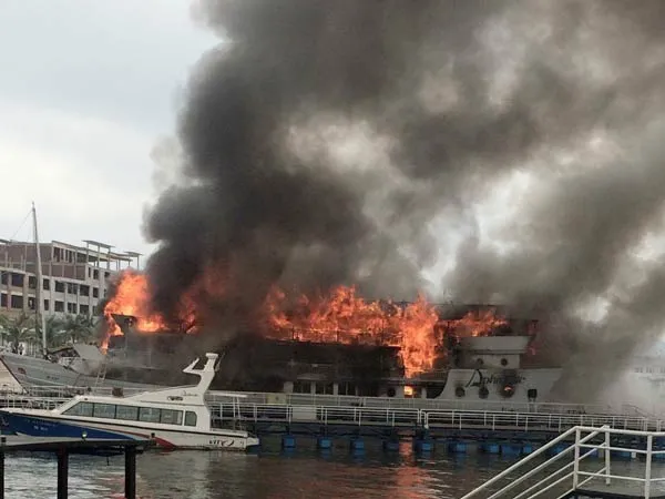 Cháy tàu du lịch, du khách hoảng loạn