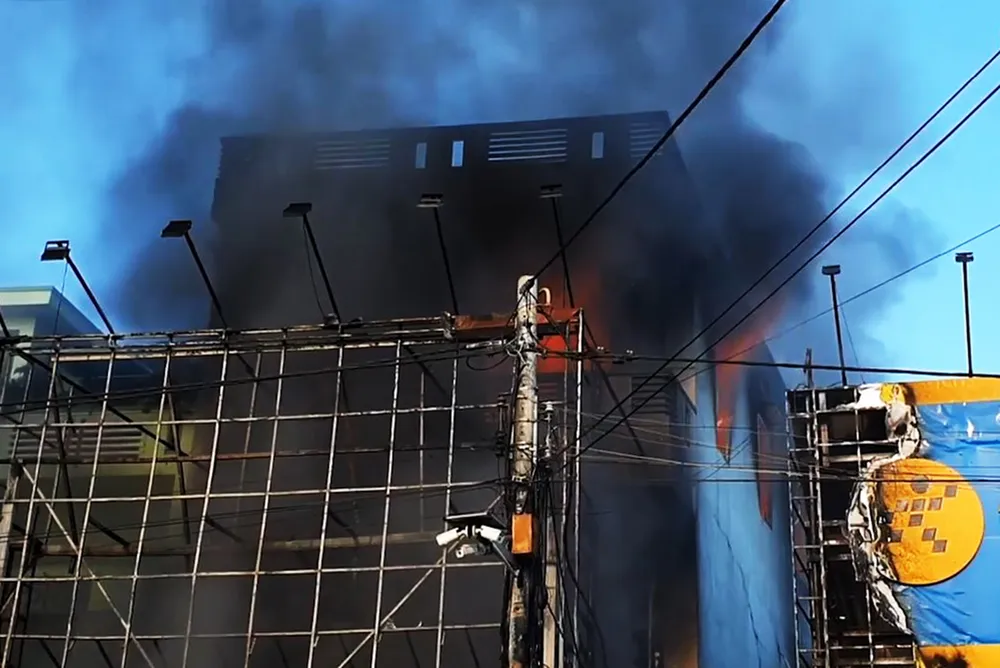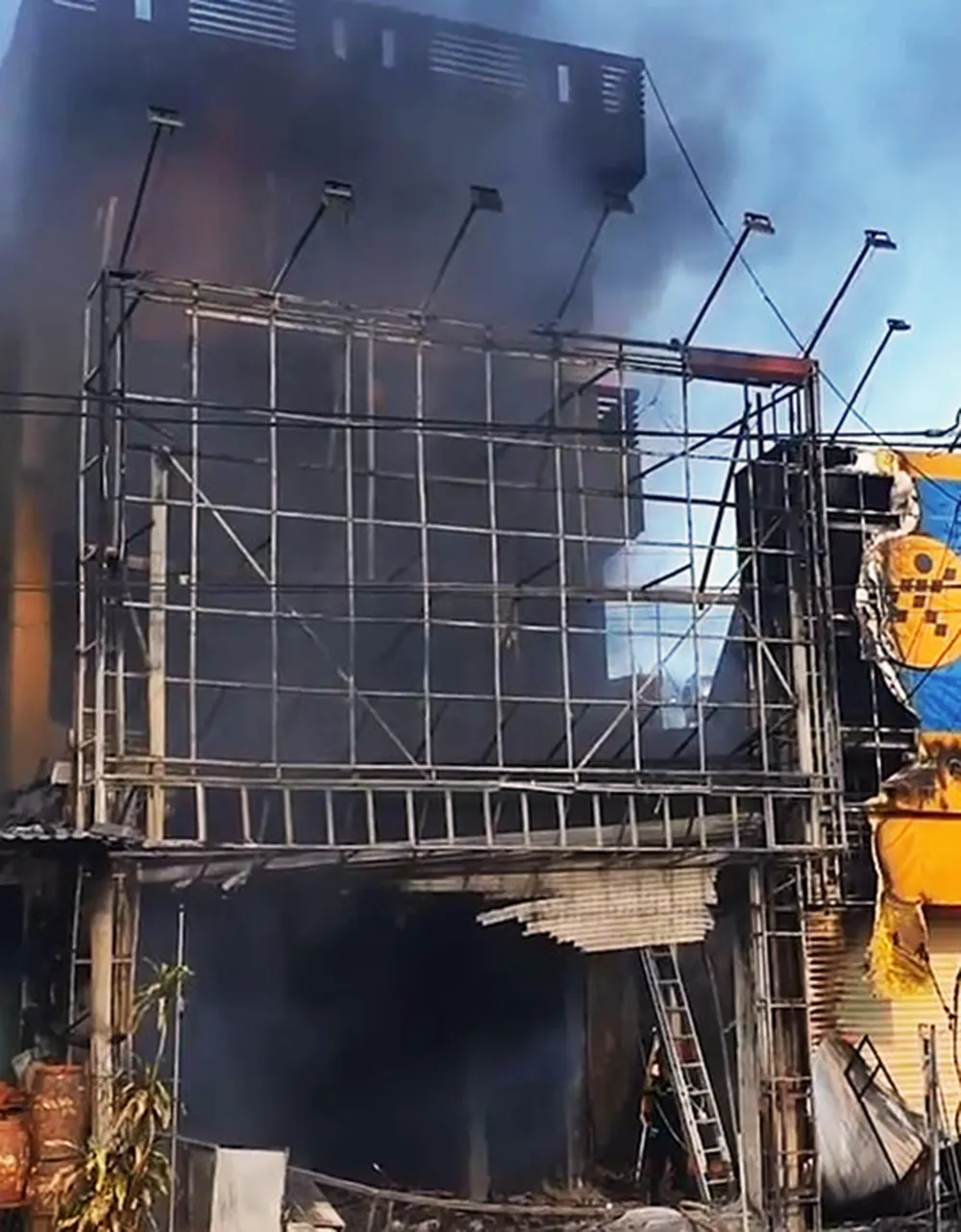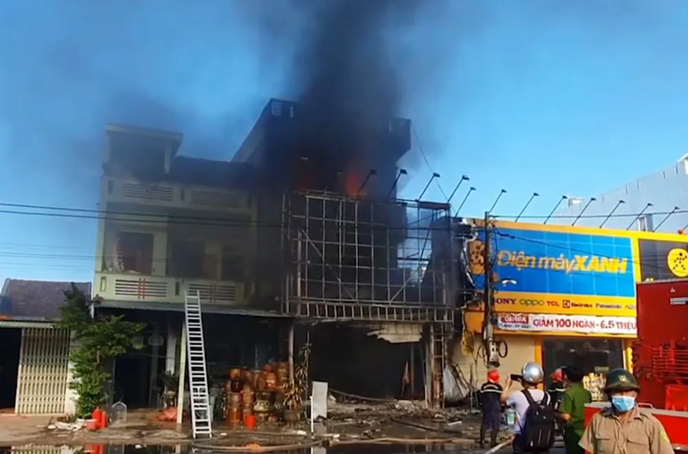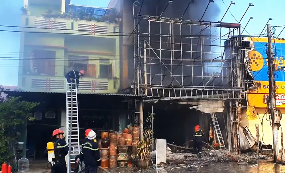 Tại hiện trường, lúc 8 giờ đến 9 giờ sáng, khói lớn kèm theo lửa bốc lên nghi ngút tại cửa hàng đồ điện tử của ông V., bên trong phát ra nhiều tiếng nổ.